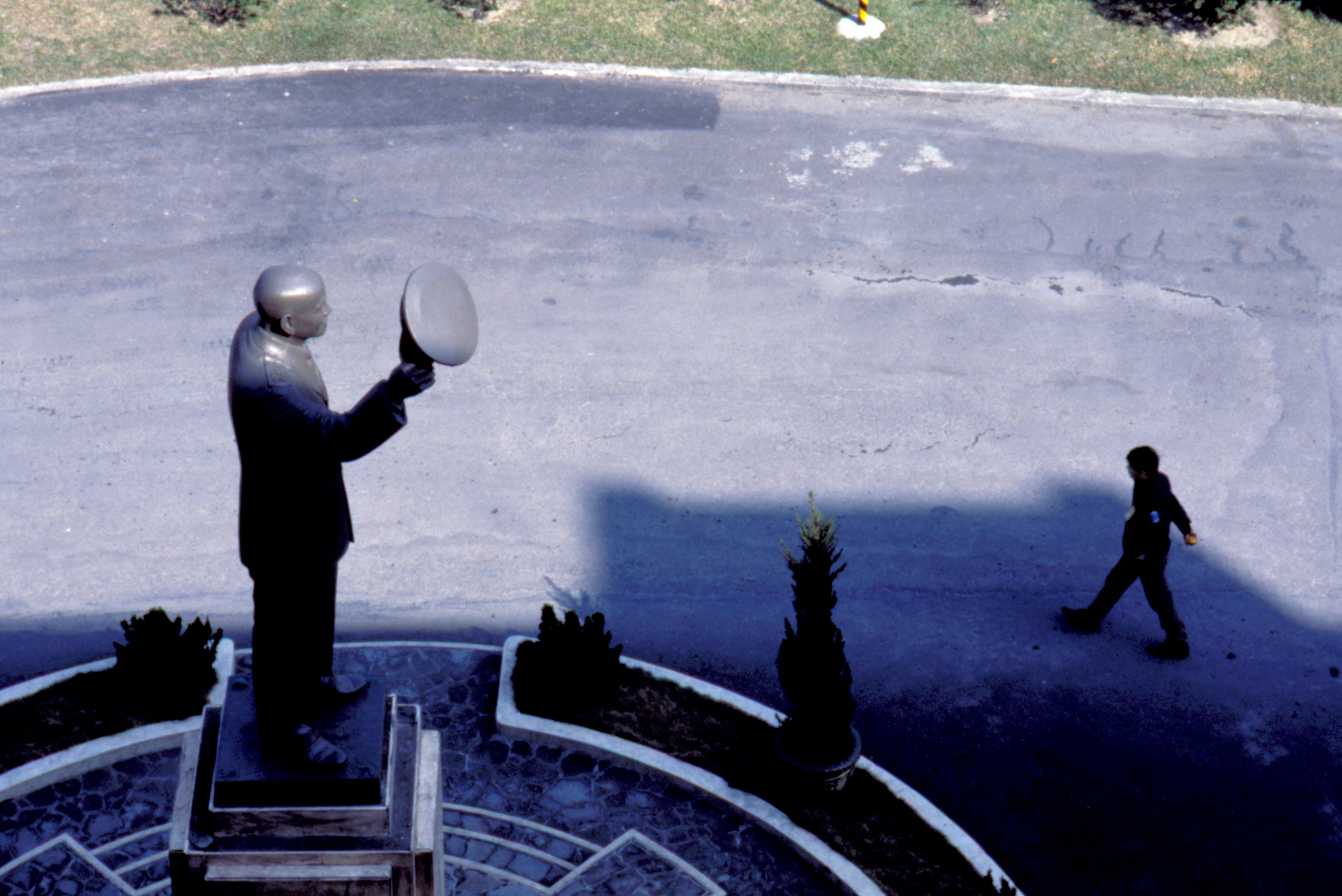 一進國防醫學院大門有座 蔣公銅像,與走路抬頭挺胸的國防人相映成趣。(傅君/鐘永和)