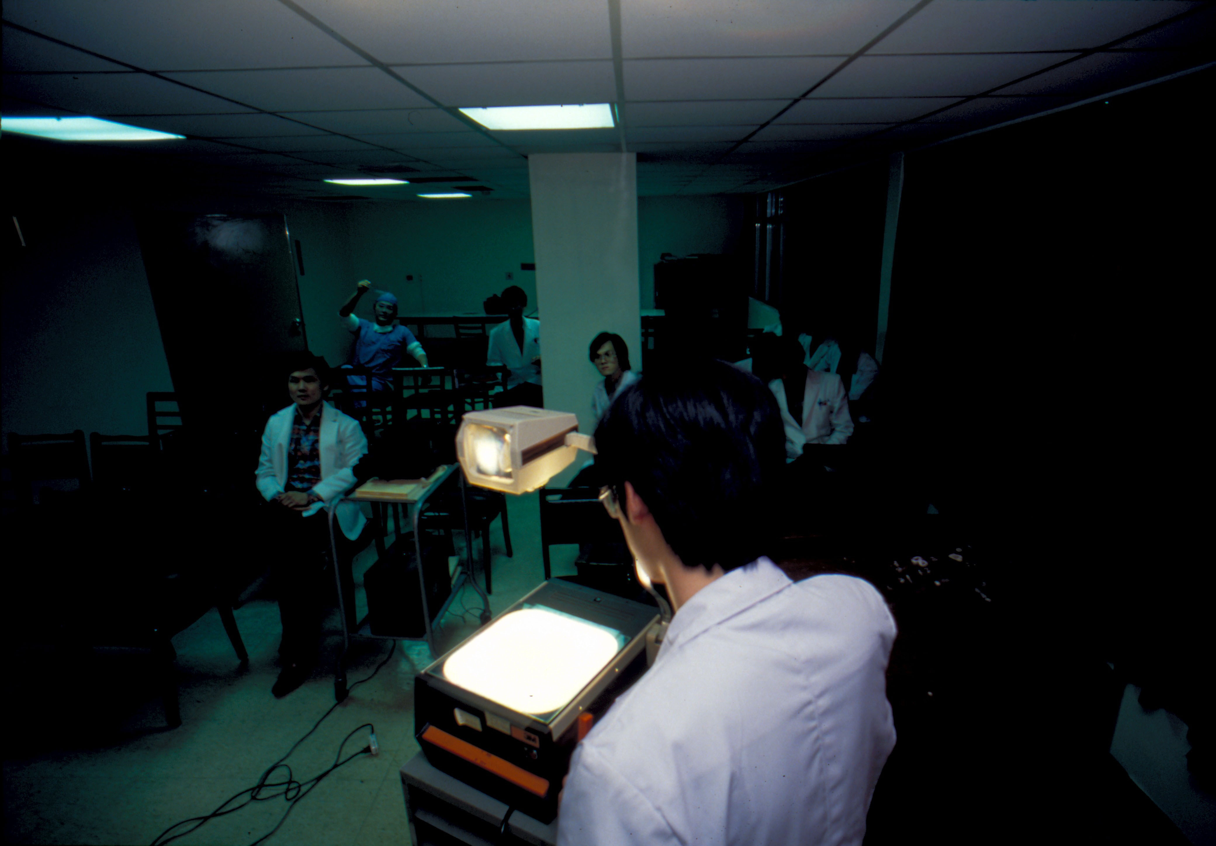 三總小兒科主治醫師陳遠浩是六十九期畢業的,他最記得當年同學晚上常和教官玩「燈火遊戲」,寢室熄燈後,偷偷跑到走廊苦讀;白天則在教室表演「課堂驚夢」。大家最關心的話題是——明天的考試,教官(國防醫學院的教授一律稱教官)會不會「電」(當)人?