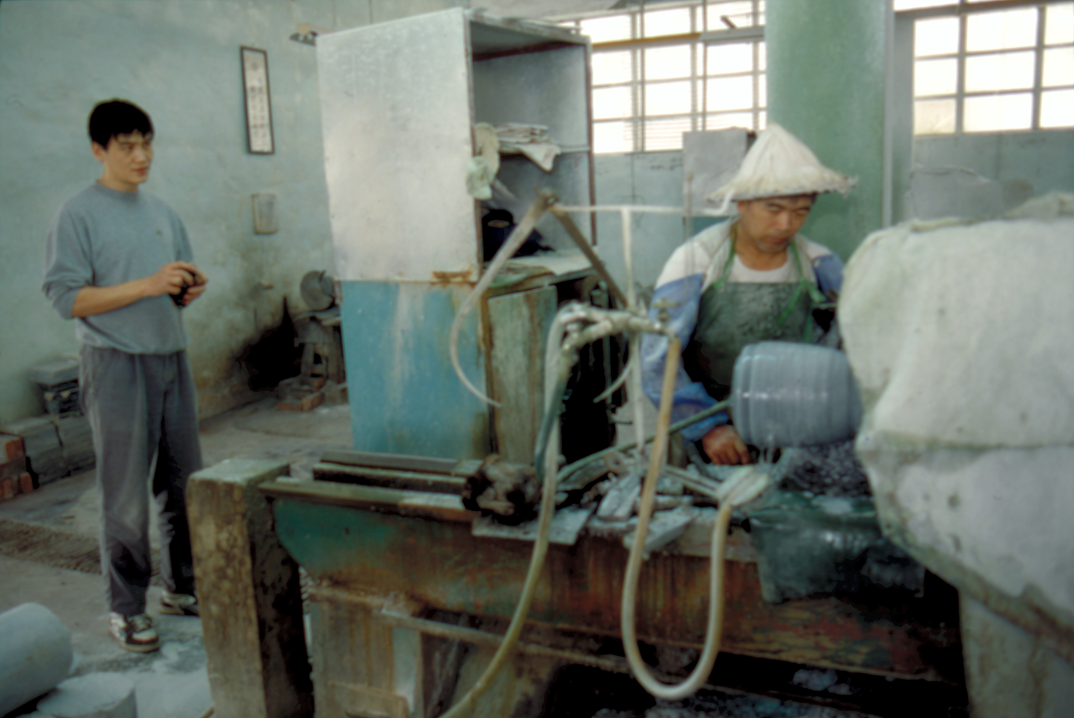 民運人士在花蓮一家大理石工廠參觀。(岳雷)
