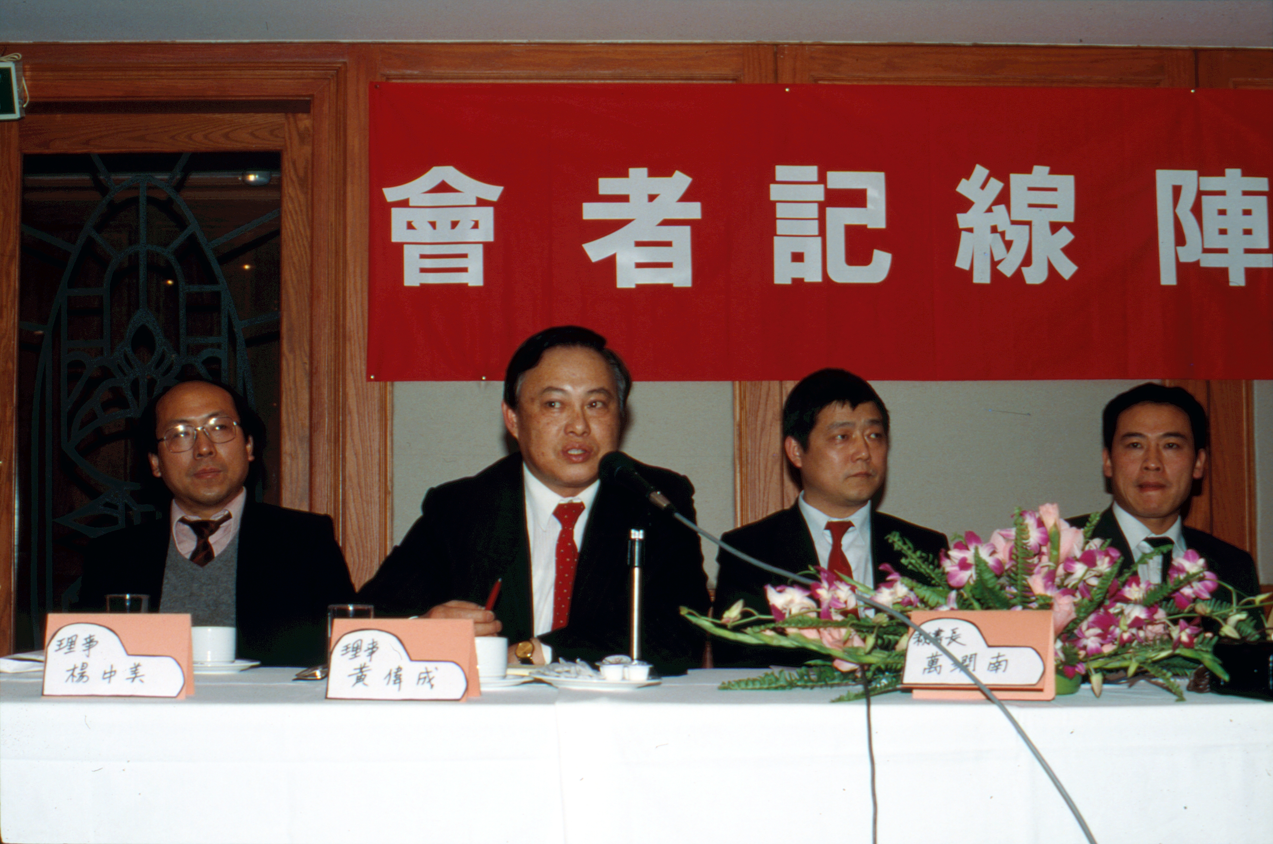 民陣在台灣召開的記者會中,宣佈了「大陸民主促進會」的籌備成立。(岳雷)