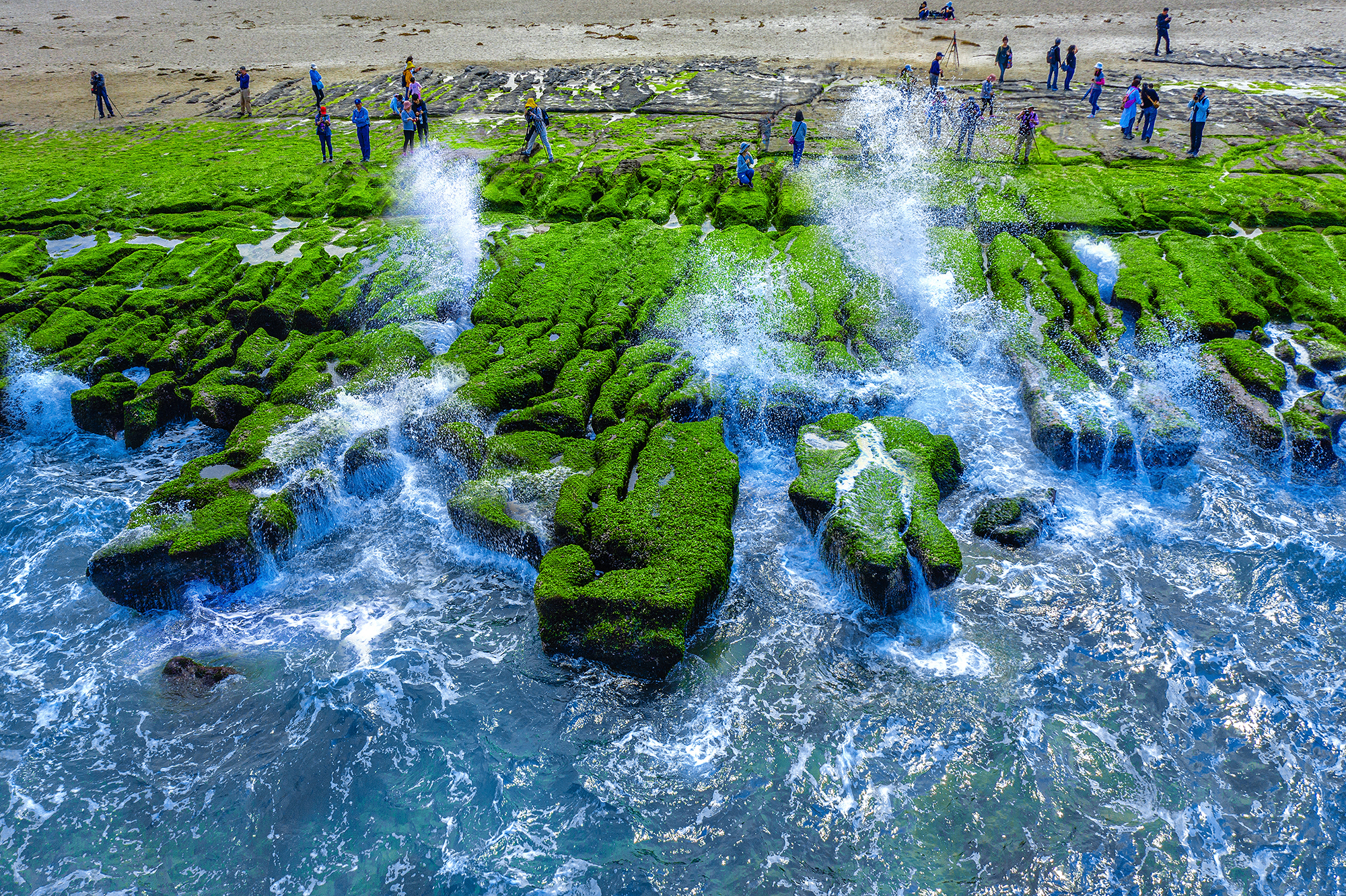 《光華》攝影徵件──海島台灣—海洋(港)與地景 綠色海岸 2024 8月 EN 日本語 分享: 綠色海岸(俞寶華) 北海岸的老梅石槽擁有獨特的火山礁岩,適合海藻類附著生長,且因長期海浪侵蝕,雕出嶙峋異石,徜徉在此,疲憊的身心立刻被這一片綠意療癒! . 關鍵字: 海島 海洋 分享: