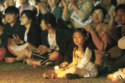 第28晚,在高雄鳳山衛武營區裡,幾座刻意保存的營房旁,有處榕園廣場,一座臨時舞台就搭在一棵百年大榕樹下。距離開演一小時,面對舞台呈放射狀的人群越聚越多,人影在夜幕中晃動,空氣裡充滿了興奮期盼。