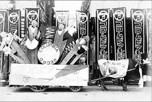 明治維新後力求西化的日本,在留聲機問世不久就已引進國內販售。1907年,日本與美國企業合資成立第一家生產留聲機及唱片的公司──「日米『蓄音器』製造株式會社」,3年後在台北城內榮町(今衡陽路上)設立支店,不久,全台出現10家左右的特約店,報章雜誌上時常出現宣傳廣告。當時留聲機及唱片屬於奢侈品(留聲機一台價格20∼100日圓,唱片一張1∼3日圓不等,而一般政府雇員月薪約為6∼31日圓),購買者多為富人、高官或酒家、俱樂部等,流通的唱片以西洋古典樂、日本邦樂(指三味線、長唄、義太夫節等傳統音樂)及大陸傳統戲曲為主。