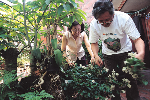 黃春明夫妻在自家頂樓種滿花樹,老夫老妻相互為伴,即使幾句嘮叨,也可感受到彼此間的在乎與關心。