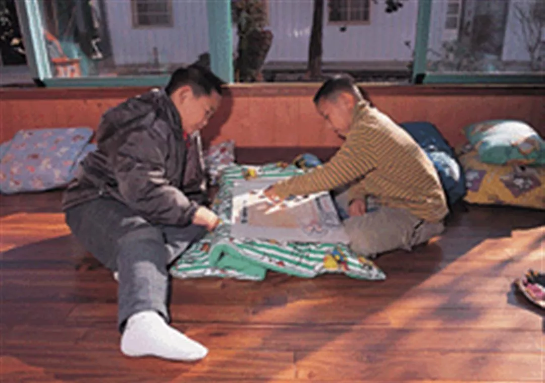 脫下鞋子,或躺或坐,這裡是小朋友休息、下棋或看書的學習角落。圖為水尾國小。