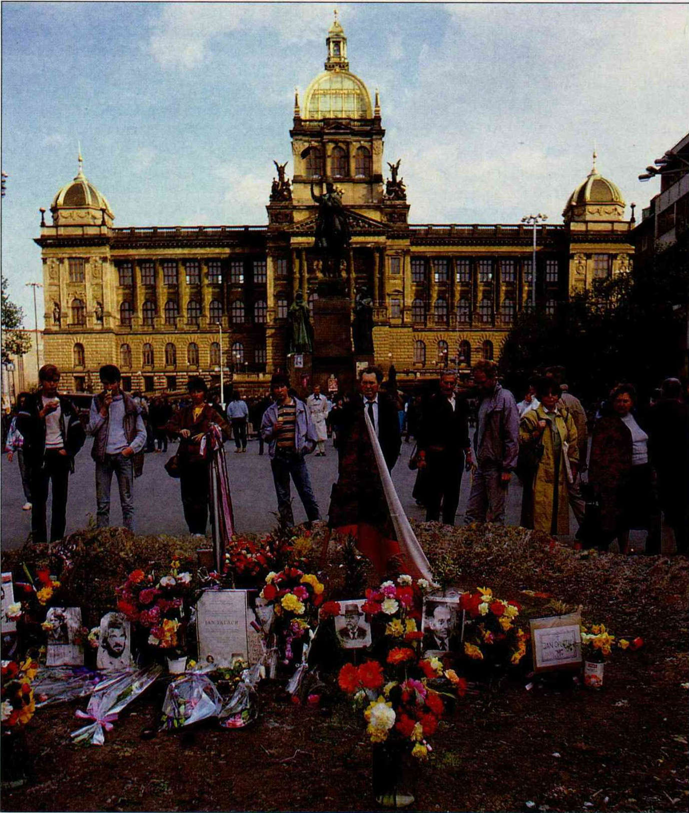 現代歷史事件中的關鍵所在與紀錄,就是明天的古蹟。圖為「絲絨革命」後,捷克民眾在廣場上紀念「布拉格之春」的犧牲者。(鄭元慶攝)