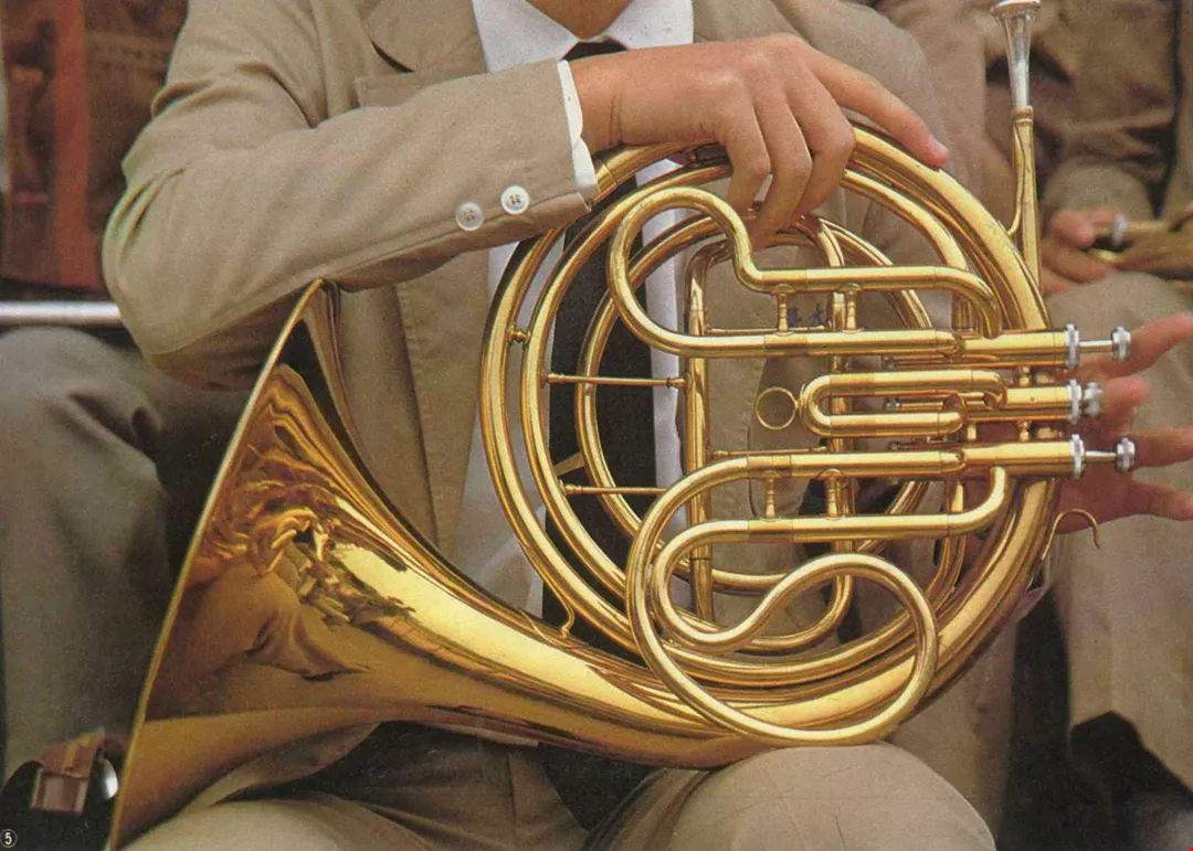 5. A French horn player takes a moment's break from his duties during a school celebration ceremony.