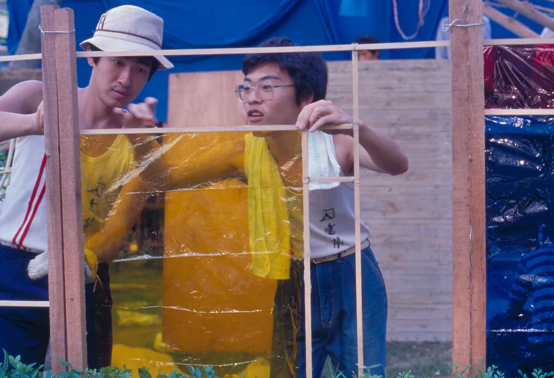 1. A profusion of yellow flowers adds a touch of color to the campus lawn. 2.3. Each year the Department of Architecture sponsors a space and dimension design exhibition. Students use various types of materials to produce their designs. 4. University students participate in a folk-song contest. 5. A French horn player takes a moment's break from his duties during a school celebration ceremony.