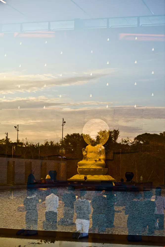 Opened in 2005 in New Taipei City’s Jinshan District, the Dharma Drum Mountain (DDM) compound is one of the most important Chan Buddhist facilities in Taiwan. The DDM organization itself was founded by the Venerable Master Sheng Yen, who passed away in 2009. Renowned for its teaching of Buddhism in the Chinese tradition, DDM has branches and schools throughout Taiwan, as well as a number of chapters in the US.