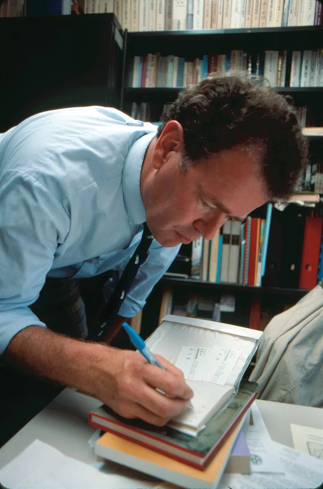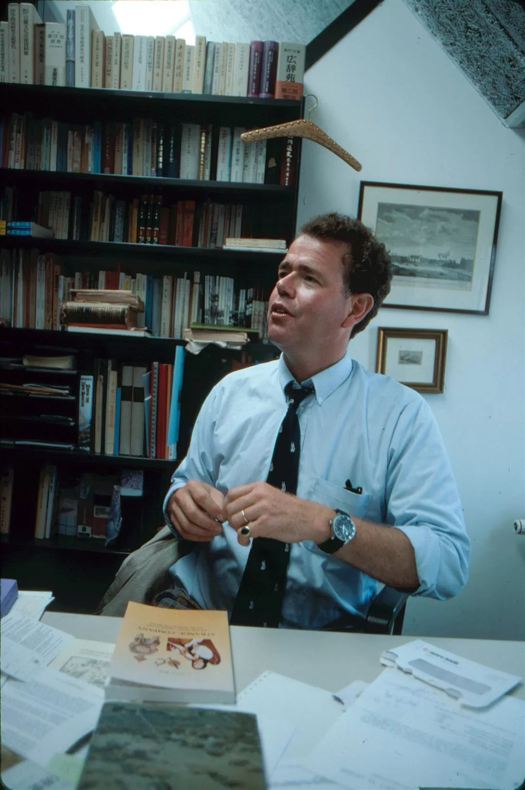 他書桌後的書架上是整列成套的「台灣風物」、「台灣文獻」。事實上,在包教授所蒐集的雜誌期刊中,有不少在台灣也已散佚不全。長年埋首在「荷據時代台灣史」這個冷門範疇中,儘管他熱情十足,卻也得接受事實、遷地為良——這位萊登大學歷史系「歐洲擴張史中心」研究員,不得不將自己的研究範圍由台灣史「擴張」到整個東南亞。