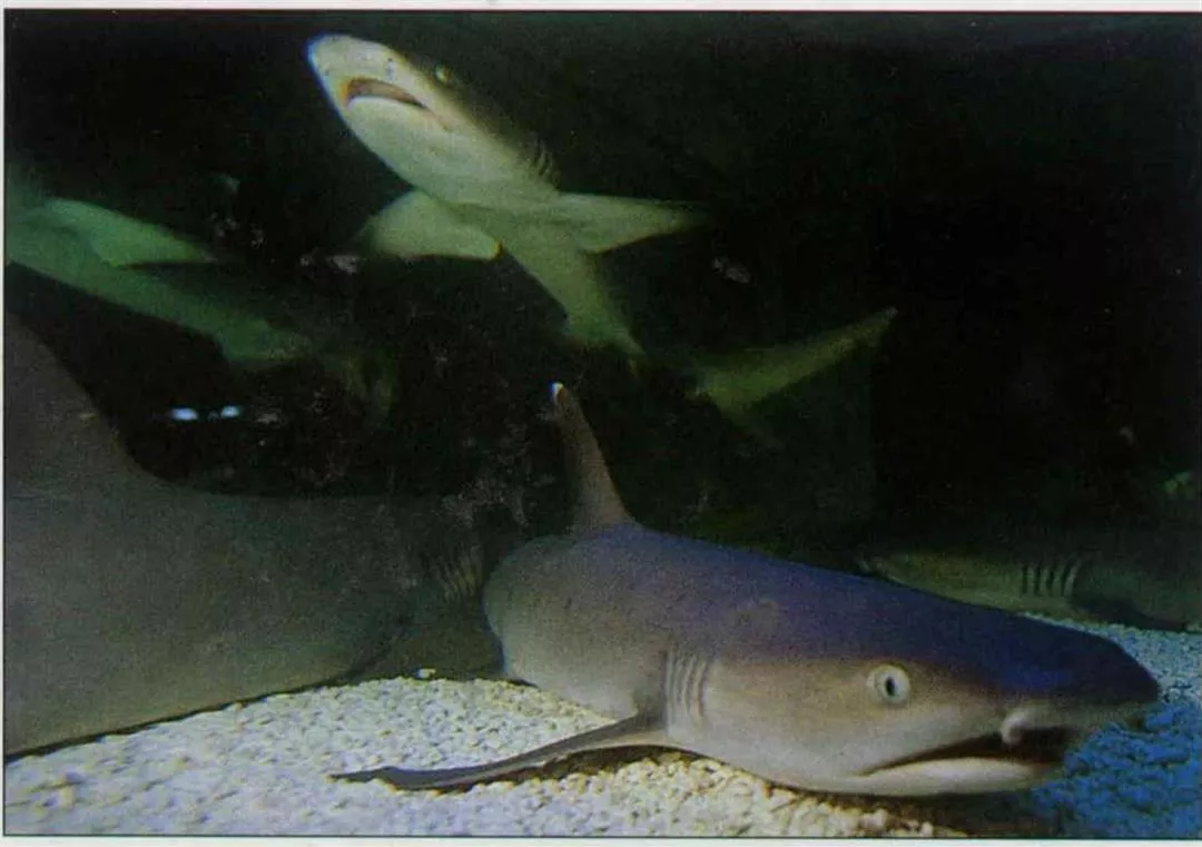 戲台下的大白鯊尤有甚者,十六年前美國好萊塢上演電影「大白鯊」後,戲裡被視為殺人魔的鯊魚,成了現實世界真正的受害者。因為人們爭相收藏它那被喧染成本世紀最恐怖的下顎,在美國一付大白鯊下巴高達五千美金,重賞下必有勇夫,拿著槍械獵殺白鯊,成為西方潛水者的最愛,進而殃及各種鯊魚,骨架全都進了標本店。