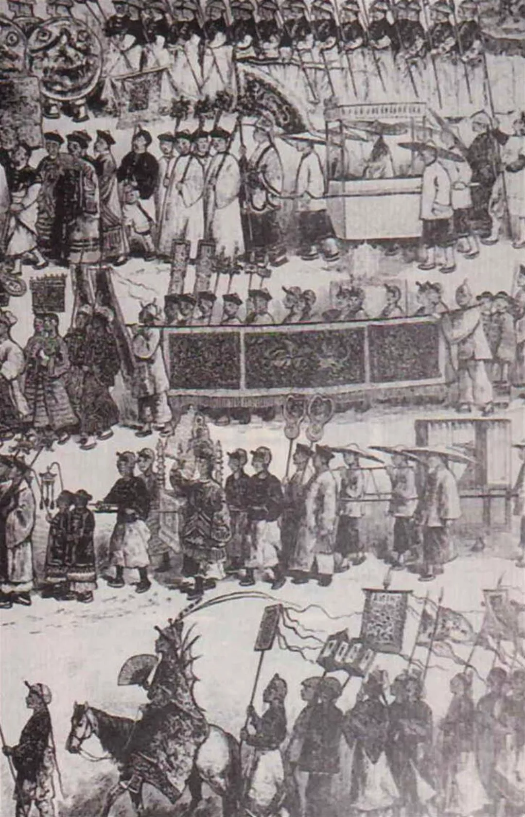 從英國畫家筆下的「華人遊街圖」可看出,儘管離開故土,每逢神明誕辰,華人仍然傾其所有,浩浩蕩蕩展開遊行、慶祝。