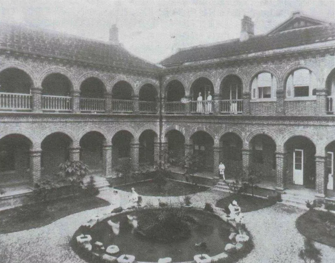 馬偕醫院成立時,院中天井種滿花樹,十分美麗。現在由於病患太多,這片小花園已建為門診部。(曉陽/李影/馬偕醫院提供)