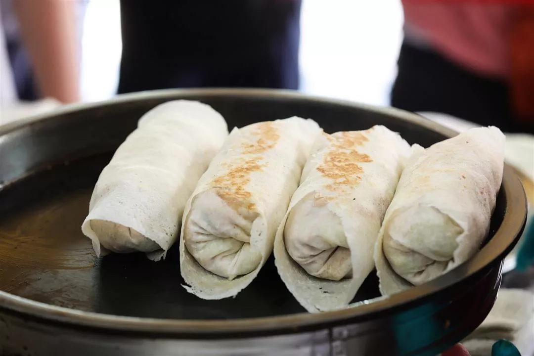 隨著族群的遷徙、各地物產的不同,潤餅也發展出不同的面貌。陳靜宜說,台灣潤餅灑上海苔粉,原形應是廈門的滸苔,台灣也受到日治時期的影響,讓大眾對海苔的接受度很高。滸苔烘乾後有海味的香氣,江浙菜也用滸苔,例如名菜「苔條蝦仁」。