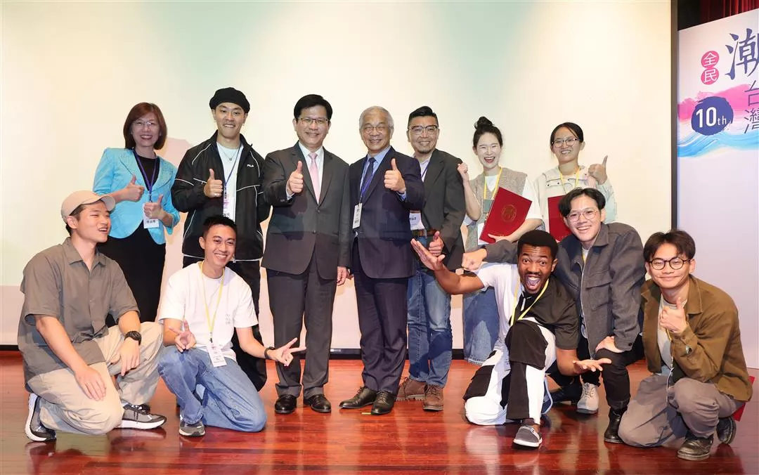 The Trending Taiwan Short Film Competition celebrated its tenth anniversary in 2024. Guests at the awards ceremony included Lin Chia-lung (front row, fourth left), Taiwan’s foreign affairs minister; Catherine Hsu (front row, fourth right), director-general of the Department of International Information Services, Ministry of Foreign Affairs; and competition judges Chen Ching-ho (front row, third left), president of Shih Hsin University; film director Wesley Ko (front row, second left); and film director Ethan Huang (front row, third right), founder of RawNFresh Studio.