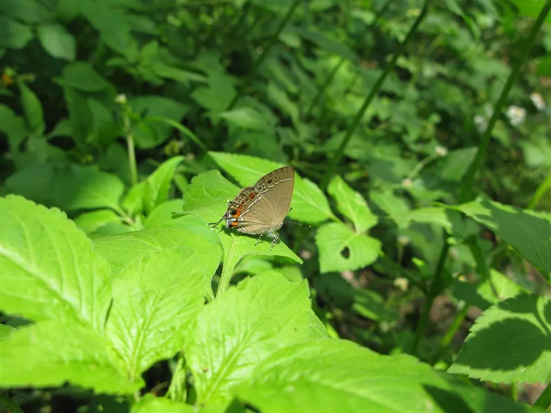 In the park, butterflies continually flit past. There is the lemon swallowtail (Papilio demoleus), which seems to disappear before your very eyes, as well as the common emigrant (Catopsilia pomona), which is likewise found at low elevations and is the star attraction at Yellow Butterfly Valley in Kaohsiung’s Meinong District. Looking up, we see a white-banded leopard (Timelaea albescens formosana), with its leopard-skin pattern, resting on a branch.