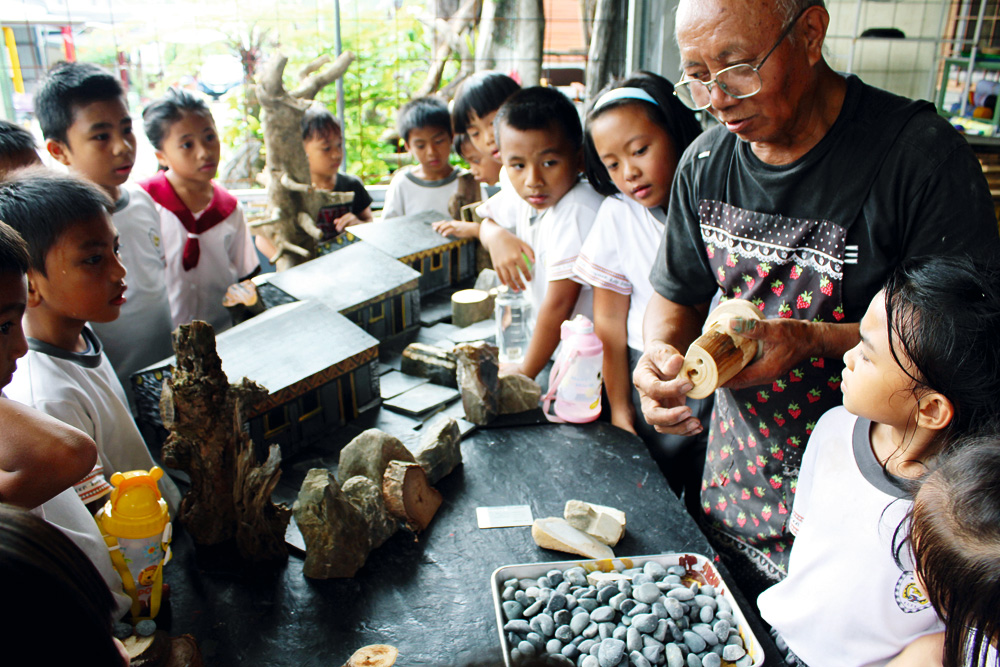 耆老為孩子講解搭建住屋的材料與其特性。