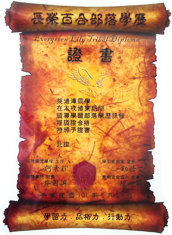 通過認證的學生,都會獲頒一張充滿榮耀感的部落學歷證書。