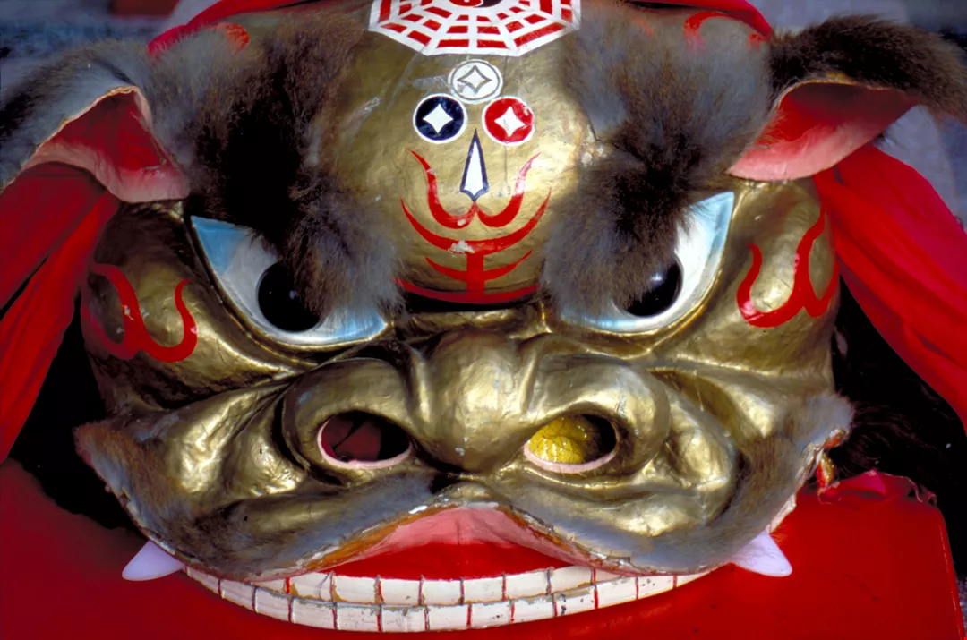 獅為「百獸之王」,中國人借重其威,讓諸邪遠避。因此,舞弄的獅頭上,通常有個「王」字,是自恃身分,也是視人其睥睨四方的氣概。