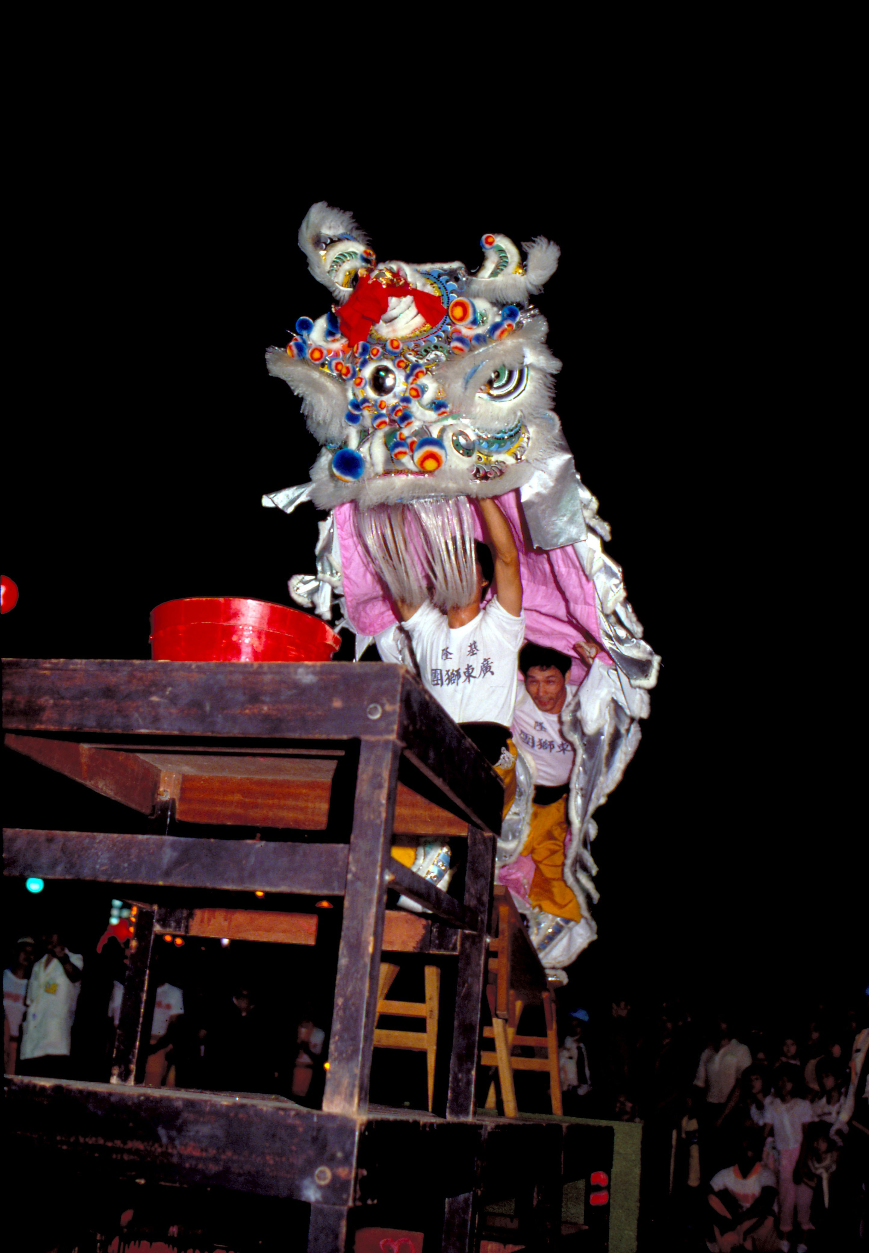 或許舞獅的樂趣也就在此。當獅子登上三山、雄踞山頭,鼓聲大做時,舞者怕也不意興飛揚,恍惚覺得自己就是那傲視天下的獅王。