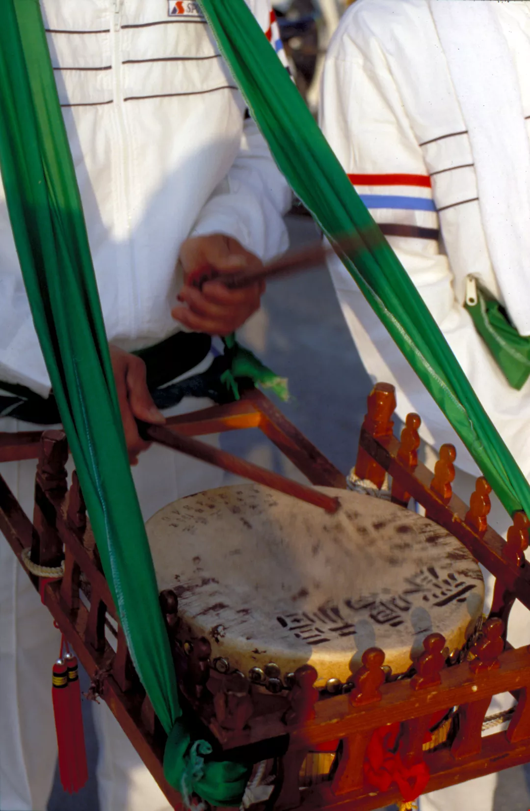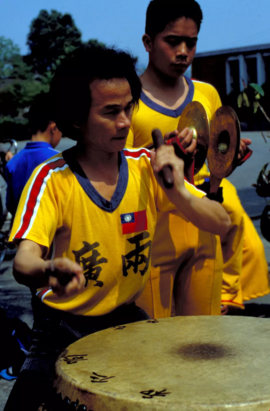 此外,廣東獅配大鼓;台灣獅用的鼓較小,「這是戰鼓的一種」,南鯤鯓代天府金獅陣的老師傅林屋說。