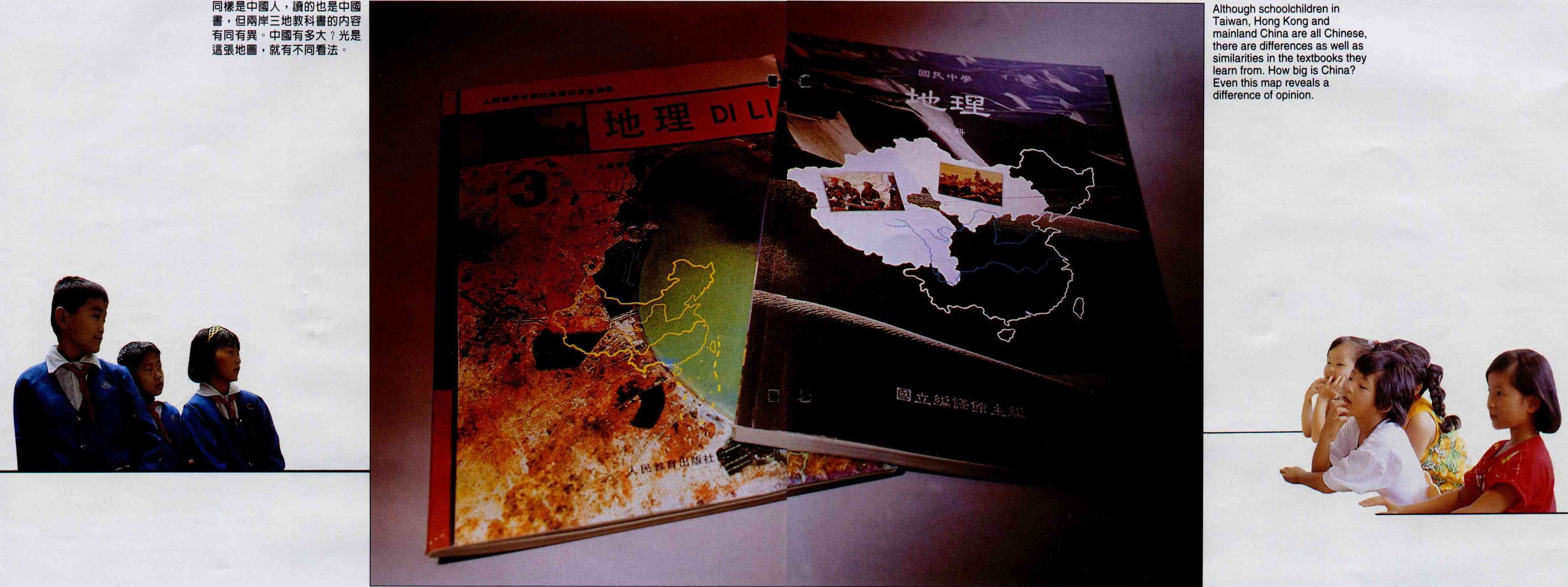 同樣是中國人,讀的也是中國書,但兩岸三地教科書的內容有同有異。中國有多大?光是這張地圖,就有不同看法。