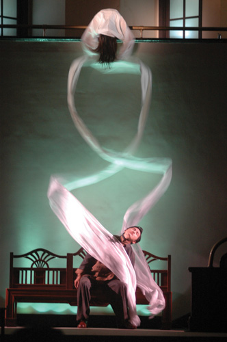 一開始,想要把一齣須花3天才演得完整的梨園戲,濃縮成一段精緻短劇,實在是件大工程。因為南管戲曲的美,就在於悠緩地刻劃角色內心的情感,讓觀眾慢慢入戲;一旦加速步調,戲就會顯得潦草而空洞。但很有創意的陳守俊,決定以舞蹈方式詮釋加快的劇情,還特地從台北藝術學院挑選5位舞蹈系學生,專程送往泉州梨園學戲半年,搭配慢節奏的南管曲調,仍不失南音之美,再把佈景、道具與服裝,以誇張的劇場效果呈現,打造出形象鮮明濃烈的「漢唐樂府」南管小品。