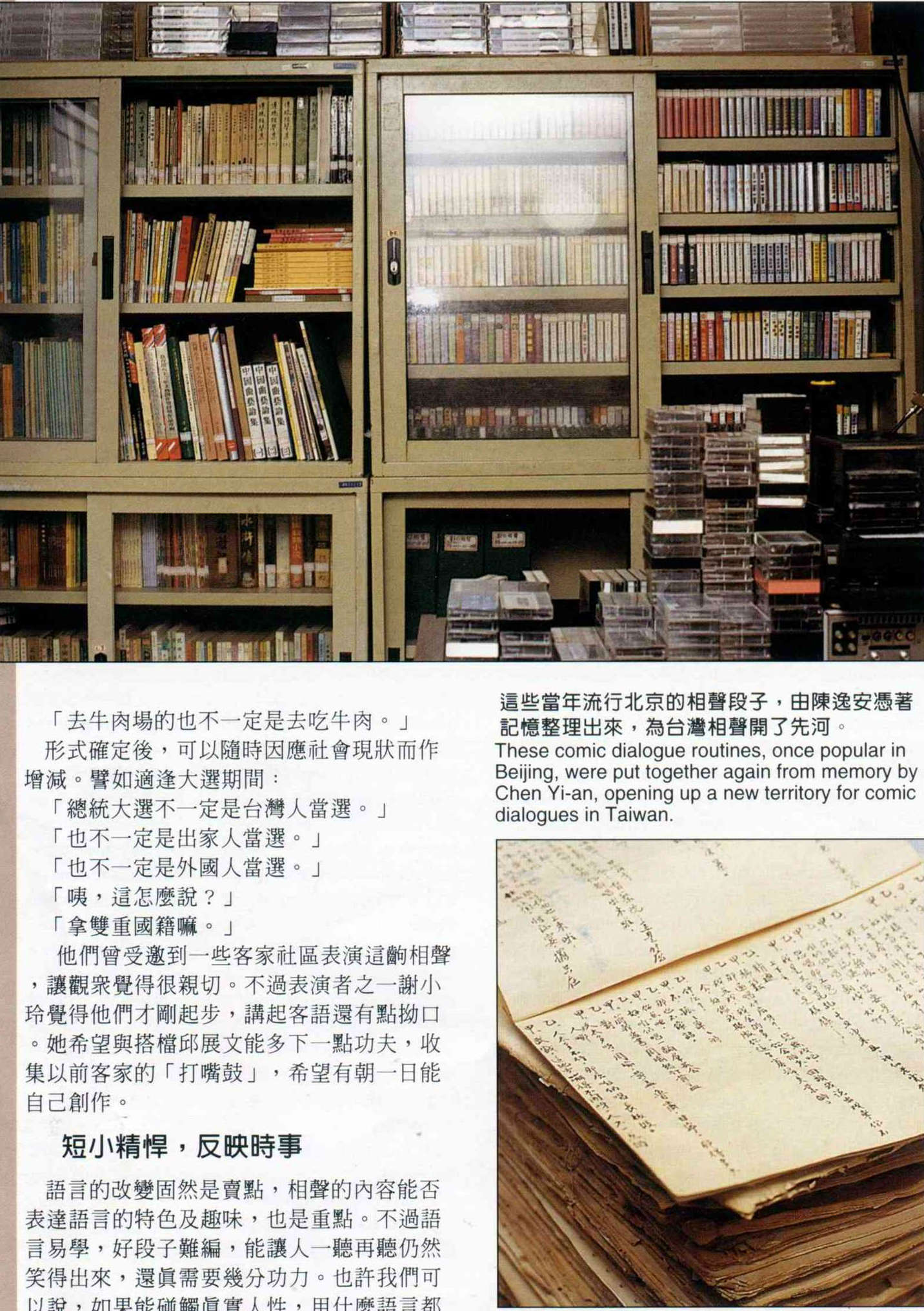 相聲的根在大陸,又因為中共的推廣,有詳盡的歷史及理論研究。「漢霖」圖書室的收藏即以此為大宗。
