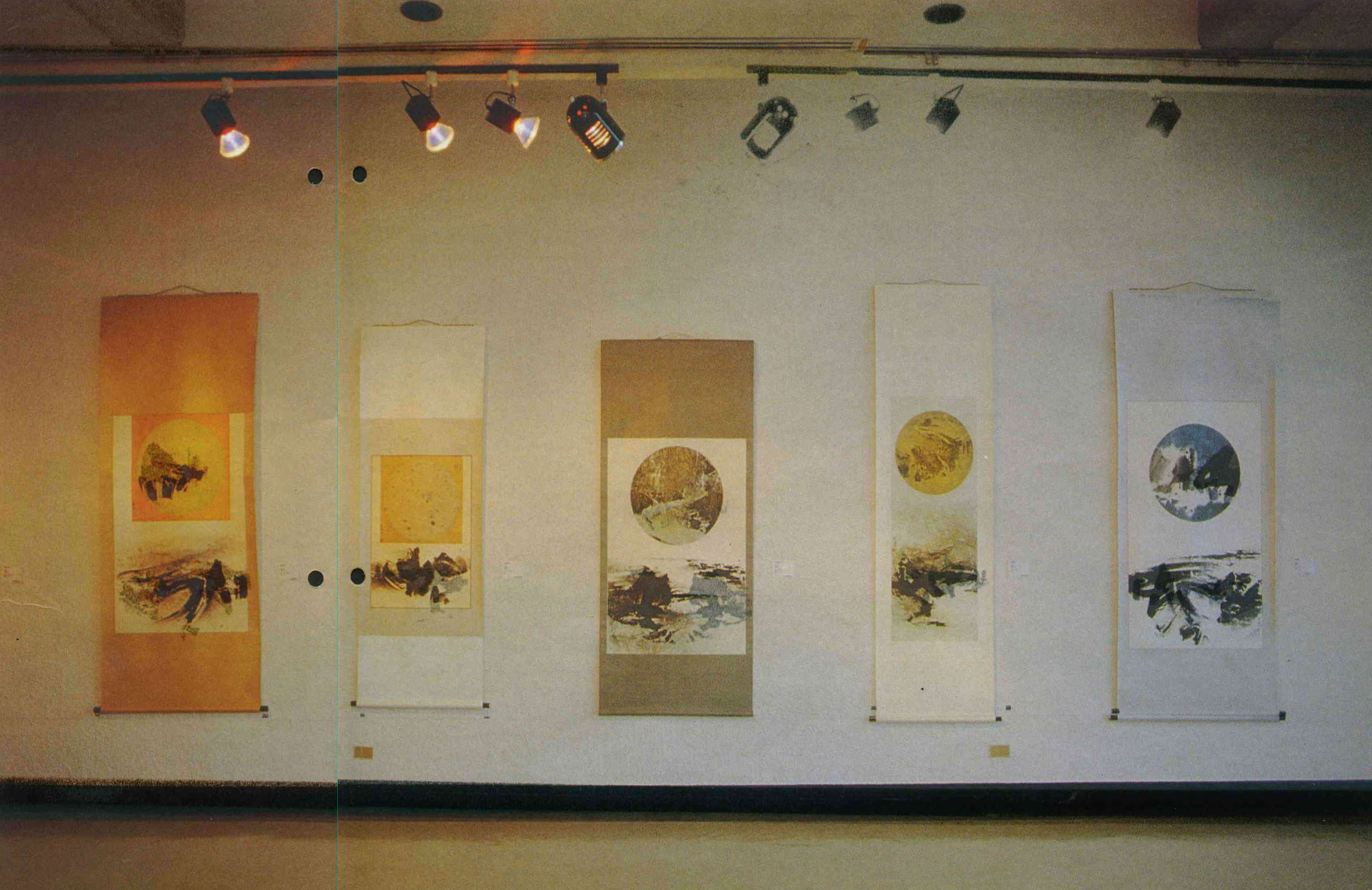 答:從一九六九年到一九七三年,近五年的時間裡,我畫了將近四萬張的太空畫,其間還用「拼貼」、用壓克力油彩、用噴槍等各種不同的方法來豐富畫面,並且試圖表現中國陰陽、佛家思想等等。但是畫久了自然會遇到瓶頸。一方面我覺得可以藉這個題材來講的話都講得差不多了;另一方面形式上愈來愈西化,也違背了我當初「創新中國繪畫」的本意,所以決定結束這個系列。剛開始的時候,「太空畫」裡的構圖要素——圓——還是丟不掉,變小變淡了,可是卻一直跟我,我這才驚覺「傳統」和「習慣」的力量實在很大。