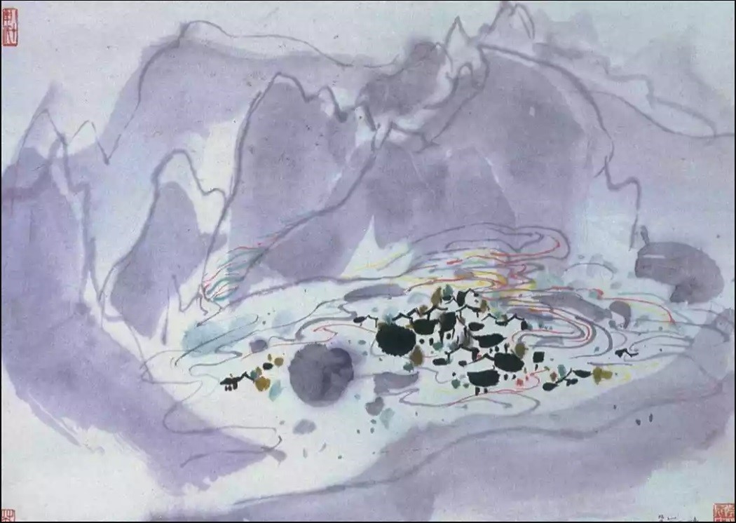 大陸畫家吳冠中曾受劉國松啟發,他的現代水墨饒富創意,備受國際畫壇矚目。圖為其山水畫作品。(帝門藝術中心提供)
