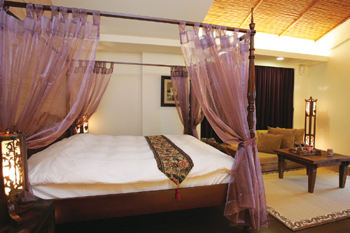 以巴里島風情為主題的「烏布皇宮」,則是目前要價最高的頂級民宿套房,不僅有玄關、客廳、臥室,還有檜木加上版岩打造的景觀大浴池,和觀景陽台。房中的寢具、設備較諸五星級大飯店,有過之而無不及。