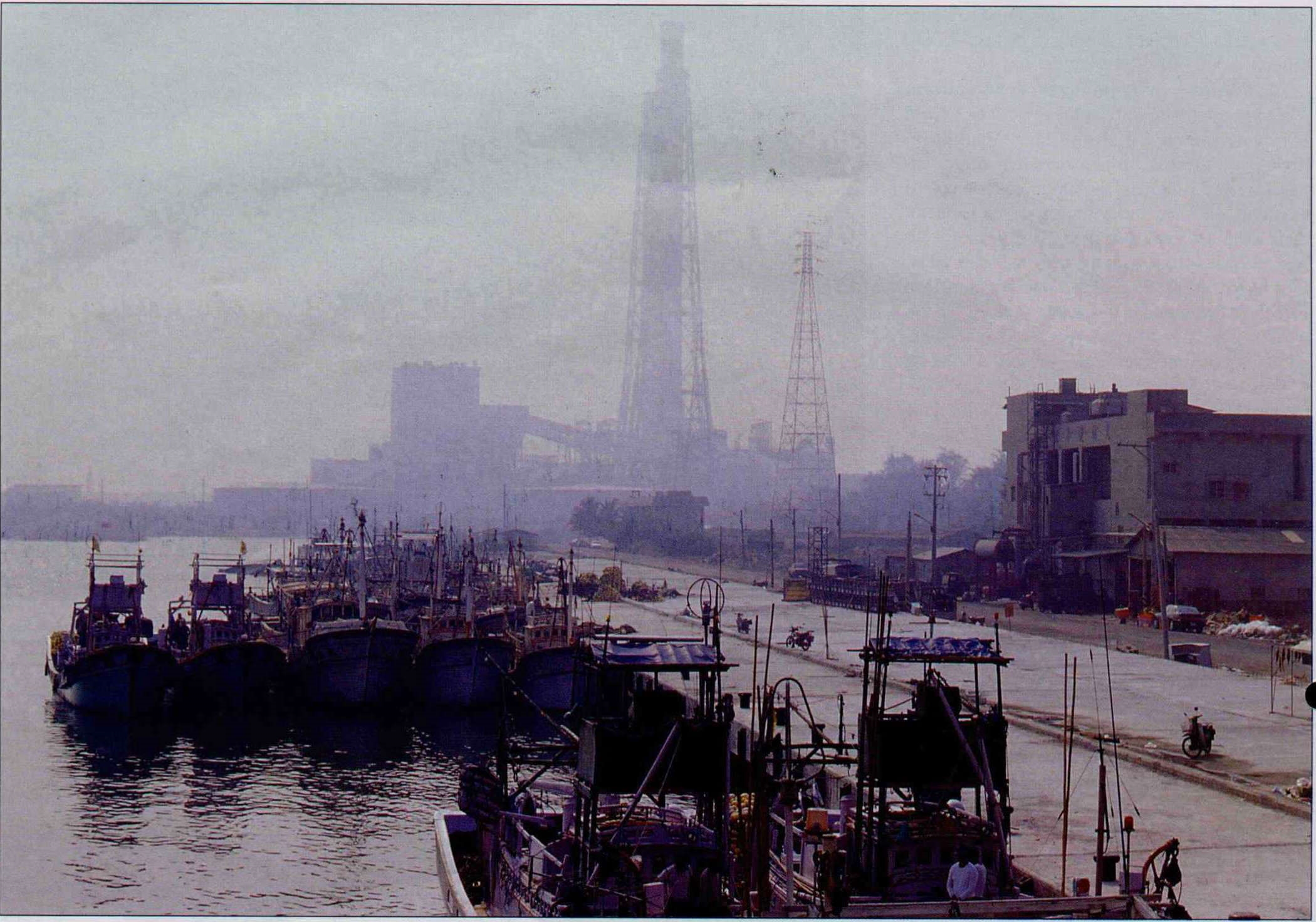 位在興達港的火力發電廠就建在茄定漁港邊,八十一年底,漁獲大受影響的漁民,群聚向電廠索賠,釀成新聞事件。(張良綱)