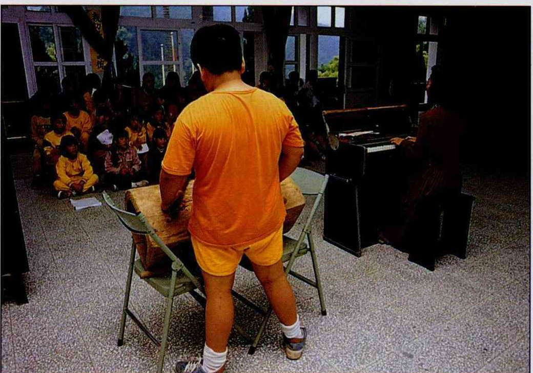 東河國小的孩子們,隨著吳德貴敲擊的節奏,歌舞出原住民的旺盛生命力。