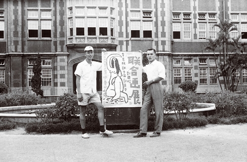 郭東榮(右)1956年在師大藝術系舉辦「4人聯合畫展」。