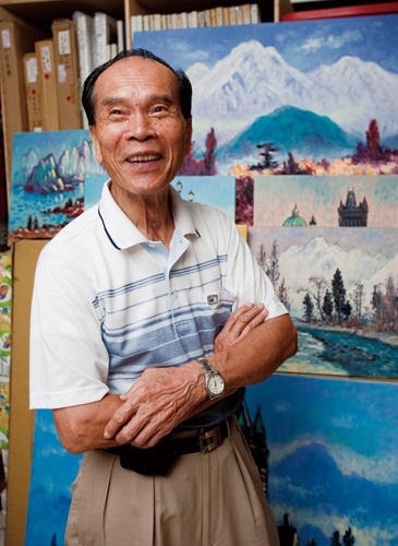 幸好在師院就學時,當時台北第一家美術社「學校美術社」老闆姜鏡泉愛才,先提供顏料給他,還讓他把畫作掛在店裡寄賣,賣出時再「抵繳」顏料費,讓他不必為顏料費傷神。此外他也積極參加校內外競賽,除證明自己的才華外,最大的誘因還是那些獎品——他最渴求的顏料。