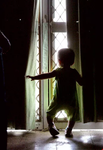 在被保護、隔絕的暗處,一名愛滋寶寶拉開布幔,嚮往外面的光亮。根據世界衛生組織估計,每年全球有六十多萬名愛滋寶寶出生,不分地域和經濟發展程度,愛滋寶寶已成為各國政府防治愛滋的關鍵課題。