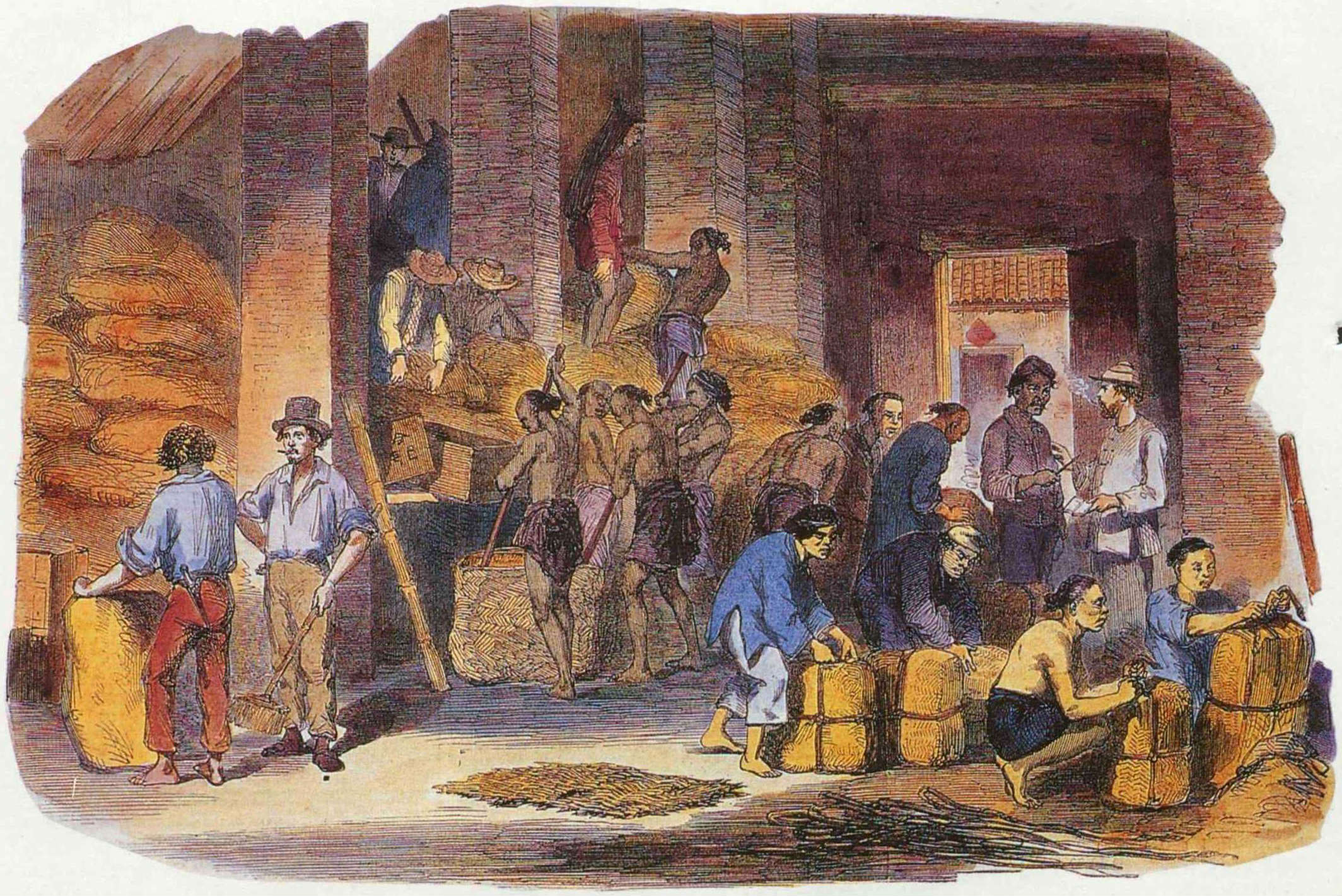 (上)荷蘭治台時期,糖是台灣輸出大宗,此圖刊登於一八五九年十一月五日的倫敦畫報。(取材自《先民的足跡》)(取材自《先民的足跡》)