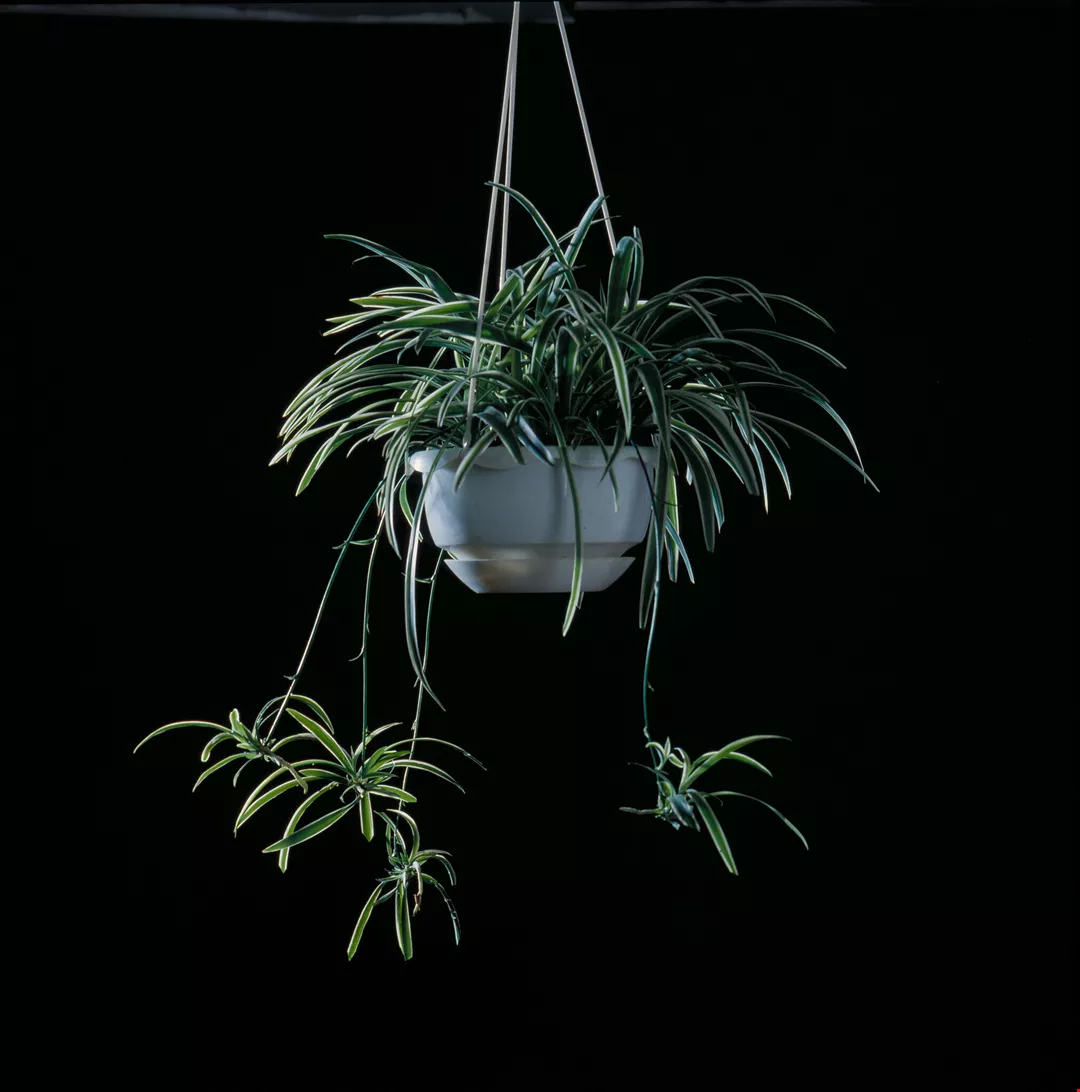 吊蘭有人稱它掛蘭,是觀葉植物群中,極易栽培的一種,成長快速,適合盆栽。(歐陽芷汀)
