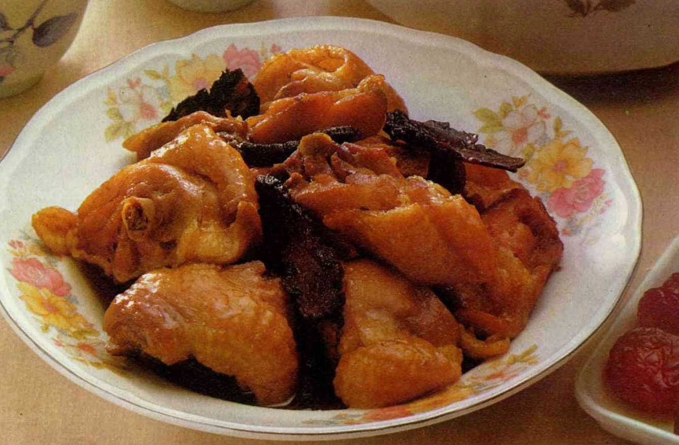 肉蓯蓉紅燒雞 文‧漢光公司 1984 11月 EN 分享: 肉蓯蓉紅燒雞。 材料:雞腿2只或雞半只、香菇3朵、沙拉油3匙、水1/2飯碗、肉蓯蓉2錢半、姜1片、蔥1支、蒜頭5粒。 調味料:醬油3大匙、紹興酒3大匙、冰糖1大匙。 做法: 1.雞肉洗淨切塊,香菇浸水約1小時後,將蒂剪掉切成小片,肉蓯蓉用水洗淨也切成小片。 2.炒鍋入油,放入姜、蔥、蒜炒香,然後倒進雞塊同炒,待雞塊轉黃,加水,再加入香菇、調味料同煮。 3.以文火煮約10分鐘,加入肉蓯蓉,再煮5至10分鐘,即可食用。 備註:肉蓯蓉乃中藥的一種,藥性溫和,經常食用可滋陰補陽,適宜秋冬季進補時食用。肉蓯蓉紅燒雞。肉蓯蓉紅燒雞。 分享: