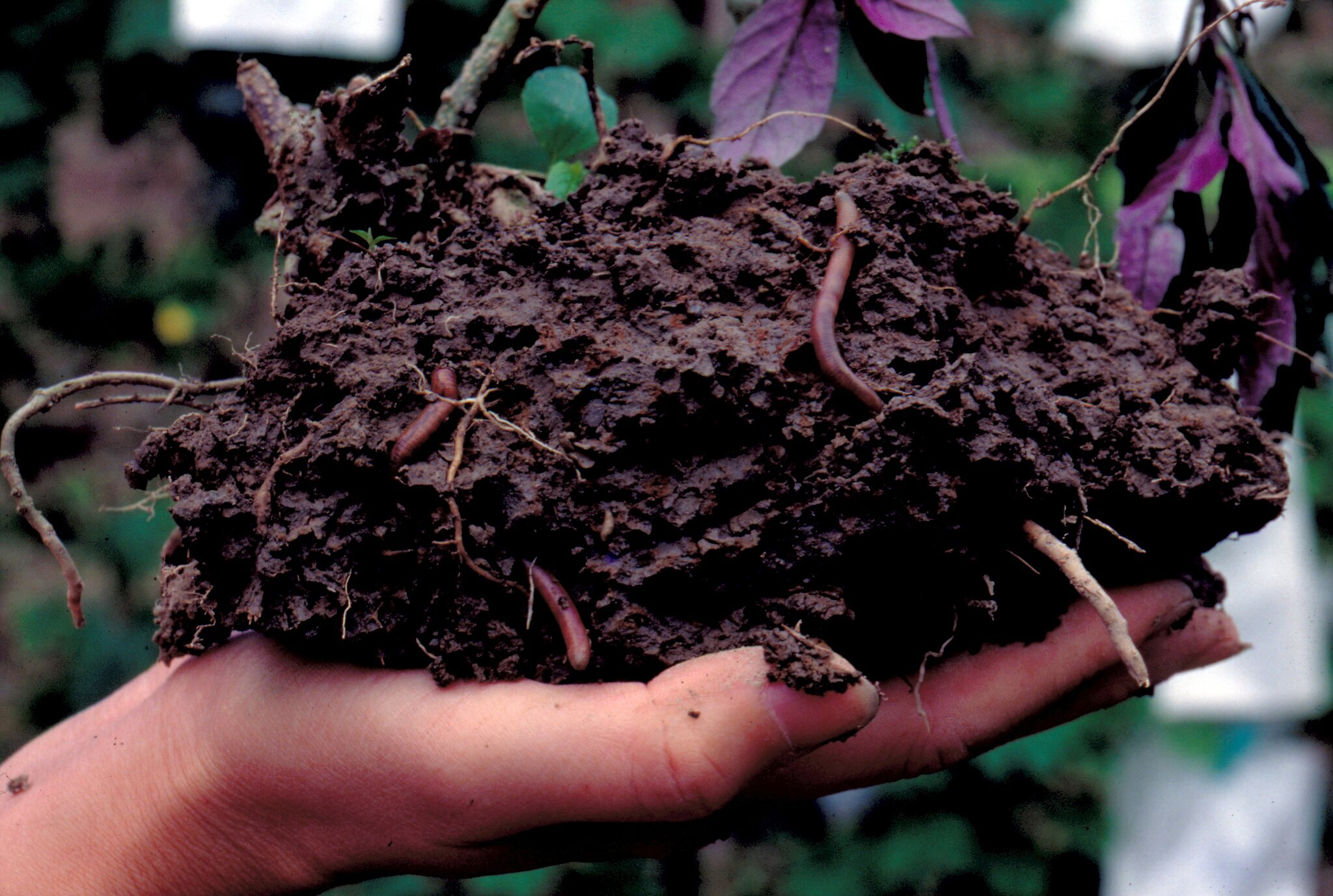 每天忙進忙出的蚯蚓,更如「鋤頭」般,是翻土的好工具。牠可以鑽入土中達一.五公尺深,土壤受其翻攪,更加鬆軟,提供植物根系更好吸收養分的空間與立足之地。土壤中的物質,經其攝食再排泄於表土、坑道間,表土層也因牠的鑽鑿而加深。