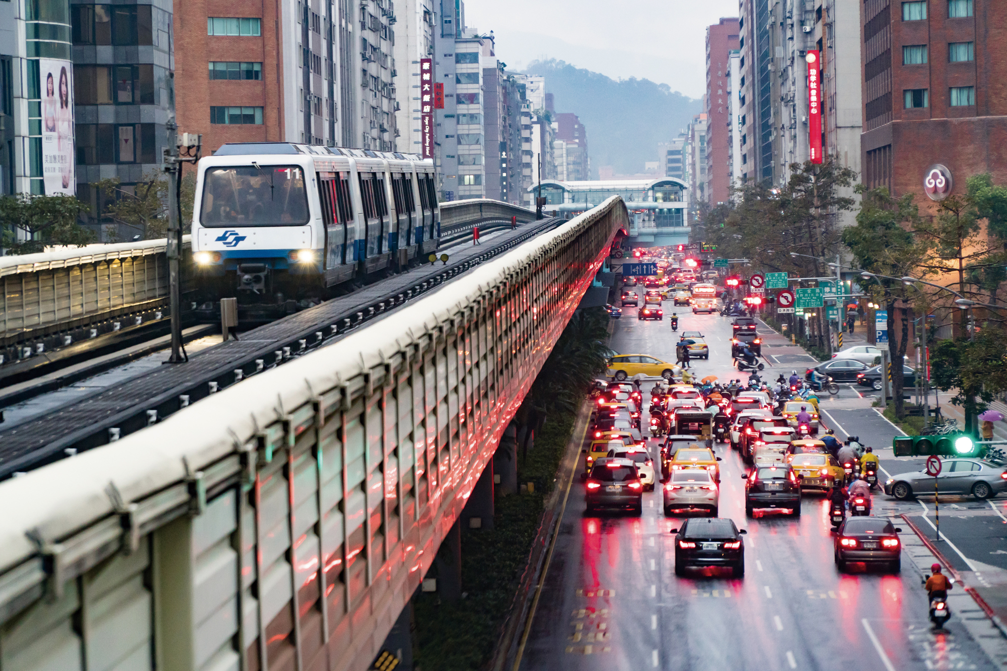從台北車站出發,原本還在地底下的捷運一穿過民權西路站,便從黑暗的地底彷彿騰躍而出,來到平面高架,沿途有基隆河、淡水河的風光,來到關渡站後便是淡水河潮汐出海口,遠方也有觀音山,山海風光盡收眼底,心情舒坦。若有餘暇,楊子葆也推薦文湖線,穿梭在高樓大廈間的軌道,讓乘客的感受與觀賞景色皆不同,如大直摩天輪、台北松山機場、101大樓等。