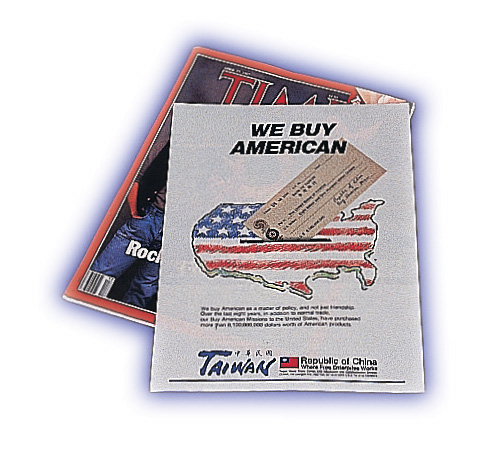 1971年,中華民國退出聯合國,1978年底,台灣最堅定盟邦美國宣布與中共建交,此時冷戰已趨於緩和,談判代替了對抗,台灣「自由中國」、「漢賊不兩立」的國家形象訴求失效,轉而開始強調「自由企業」與「經濟奇蹟」。在「台灣錢淹腳目」、台美貿易逆差最嚴重的1987年,台灣還在美國時代週刊刊登巨幅廣告,豪氣宣示「We Buy American」。