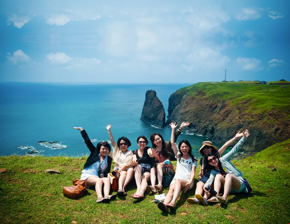 台灣多山,四面環海,風貌萬千,適合以「小旅行」的方式,一步一腳印,重新加以認識。圖為遊客在澎湖七美島景點留影。