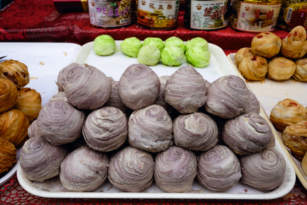 走訪小城,一定要品嚐當地的特色糕點與美食。圖為鹿港的芋頭酥、爌肉飯、五味羹、牛舌餅。
