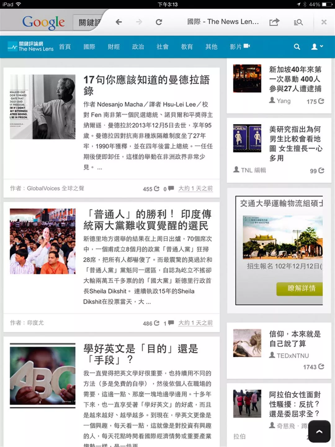 《關鍵評論網》由一百多位駐站作者供稿,結合新聞與評論,職場、數位生活、社會、教育等議題最受歡迎。