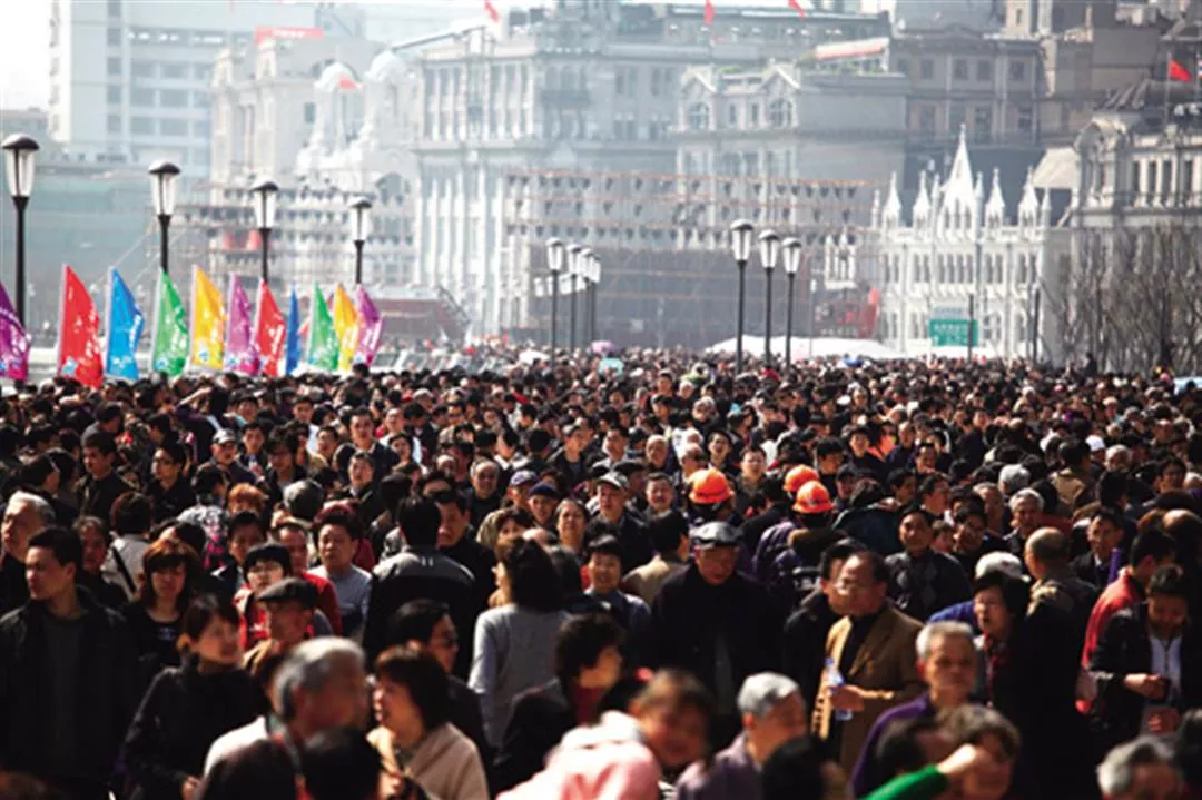 中國近年來的經濟發展成就有目共睹,但城市的人口膨脹、貧富不均、交通壅塞等問題也愈趨嚴重。圖為上海外灘重新開放時,參觀人潮如洪水般湧入的驚人情景!