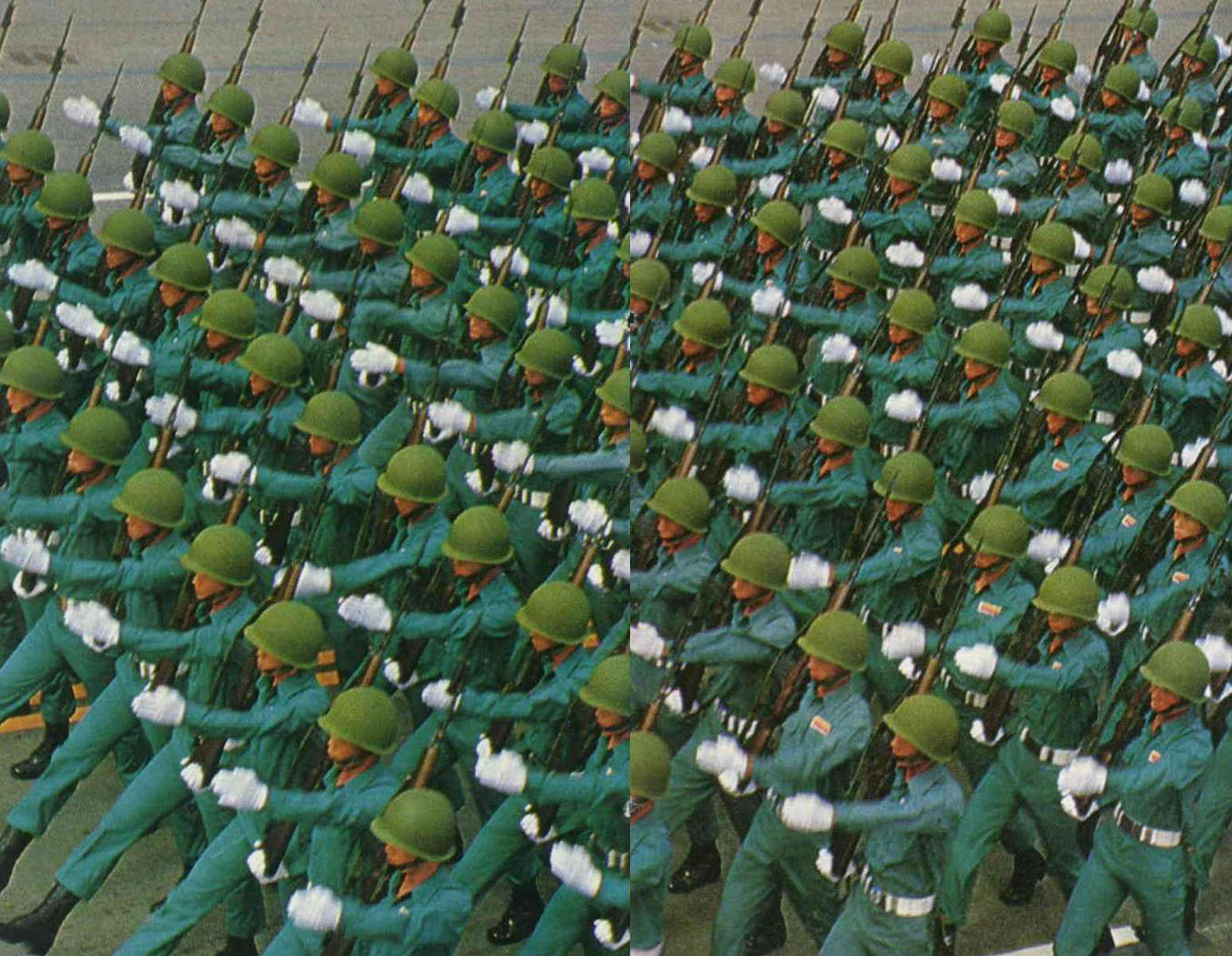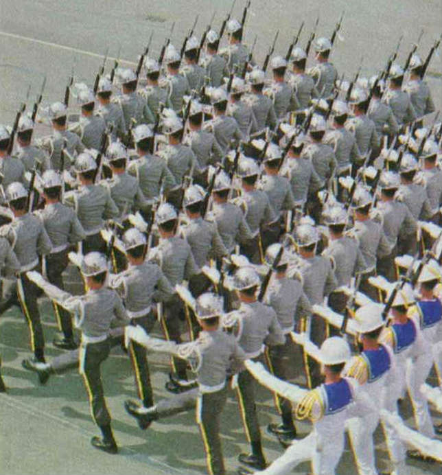 這種專注、認真的精神,存在於每一隊伍、每個隊員身上。政戰學校的李亞明同學說:「參加國慶遊行,我們感到很光榮,因此我們都有一個共同的信念:把最整齊的步伐、最團結的士氣、最飽滿的精神、最美麗的隊伍,呈現在國人面前。」