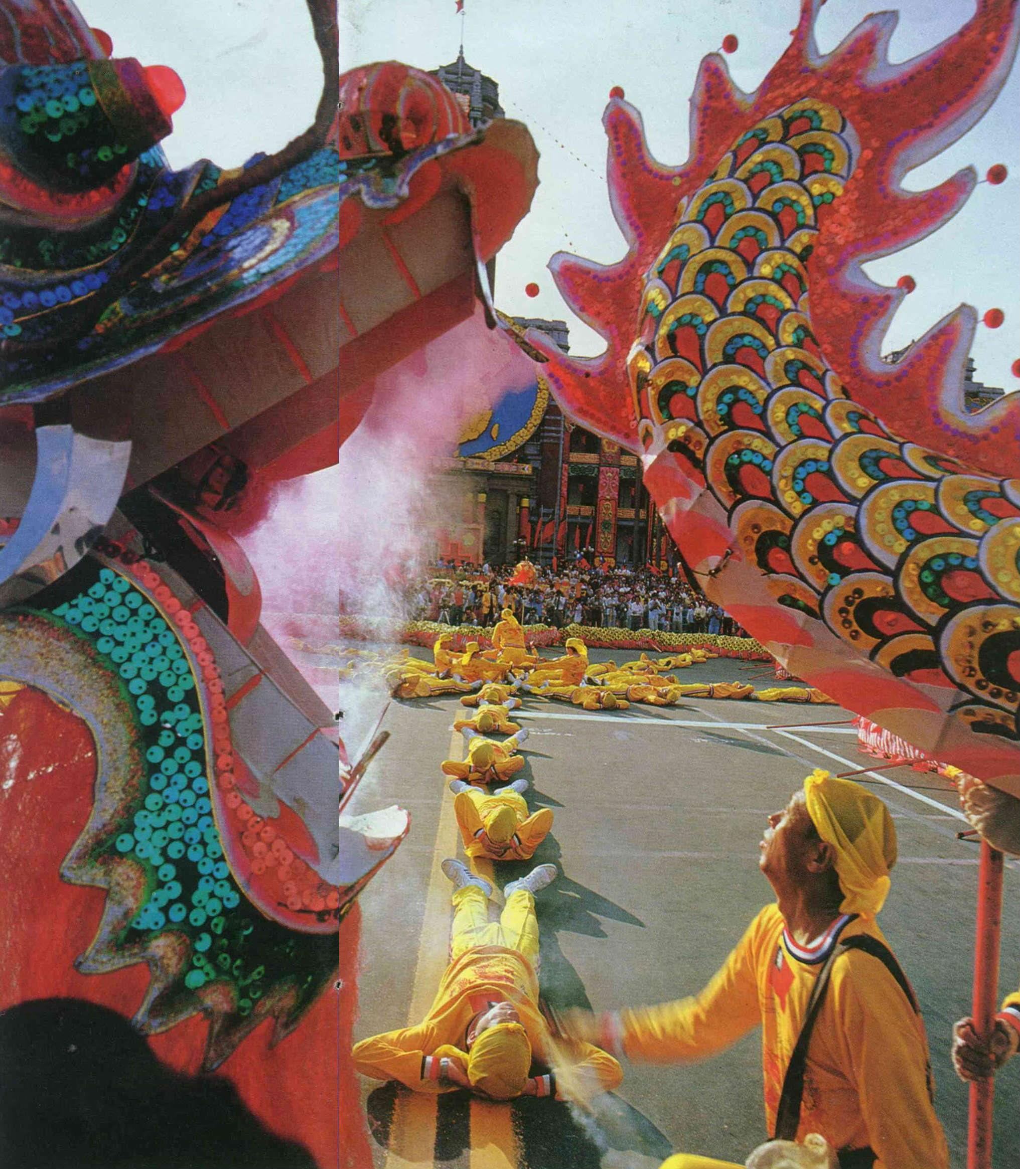熱熱鬧鬧的民間游藝表演,鼓樂雄壯,翩然舞蹈,民俗特技和龍騰獅躍,把雙十國慶點綴得多采多姿,歡欣喜悅。