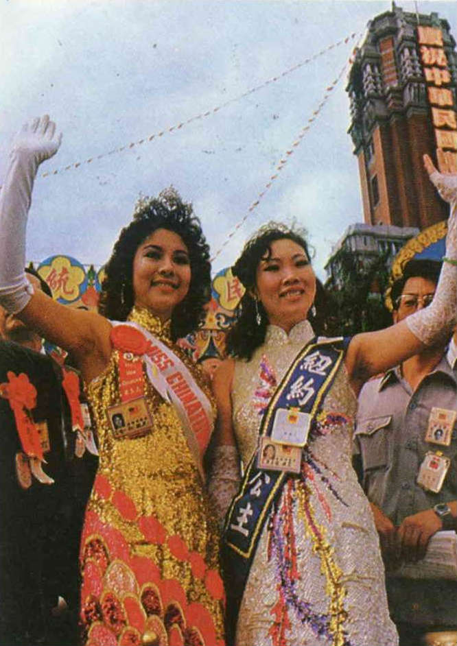 全美華埠小姐邵小媚(左)回國參加十月慶典。(楊永山/歐陽芷汀/鄭元慶)