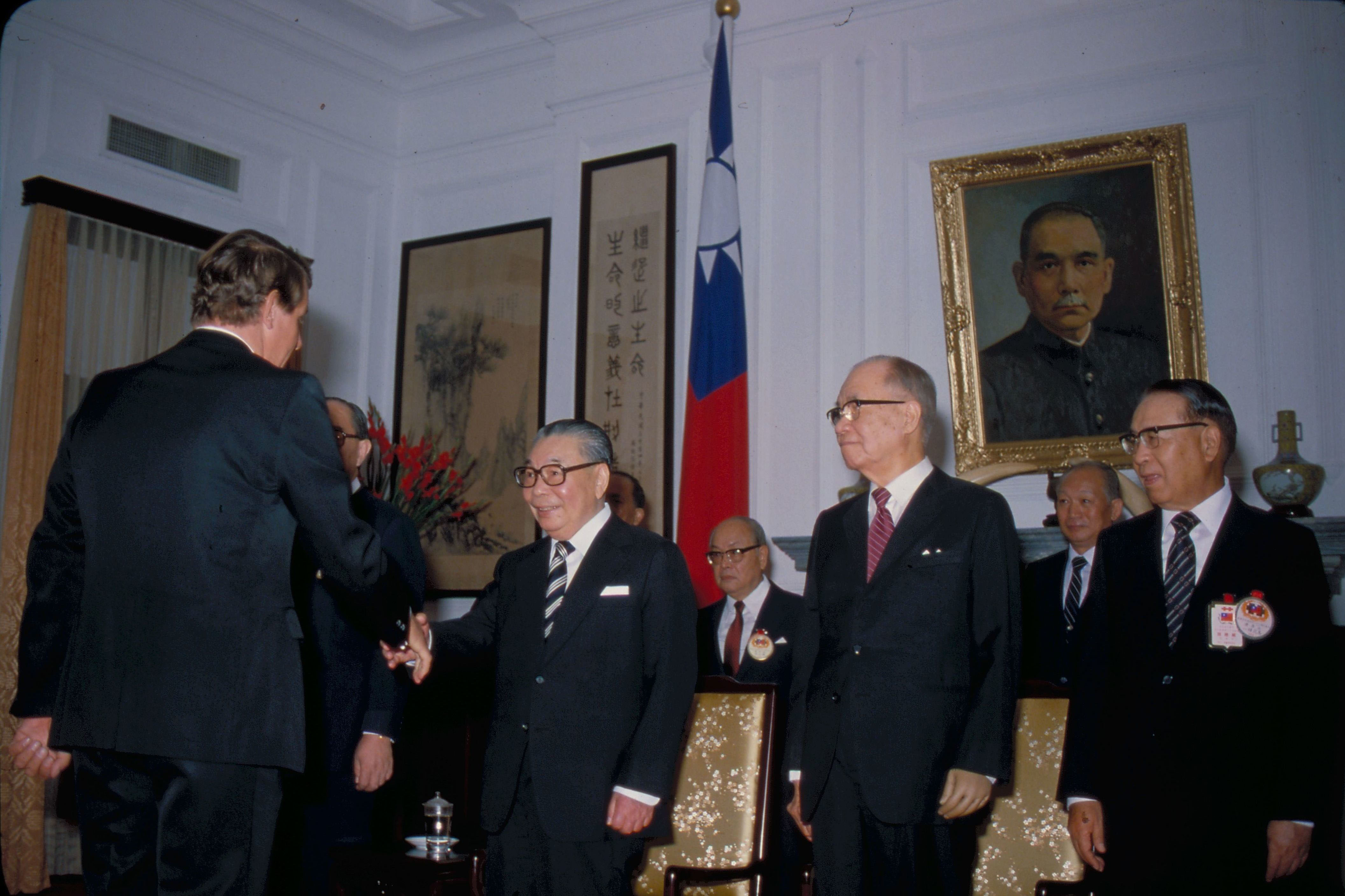 國慶當天,蔣總統接見外賓,接受他們對國慶的祝賀。(楊永山/歐陽芷汀/鄭元慶)